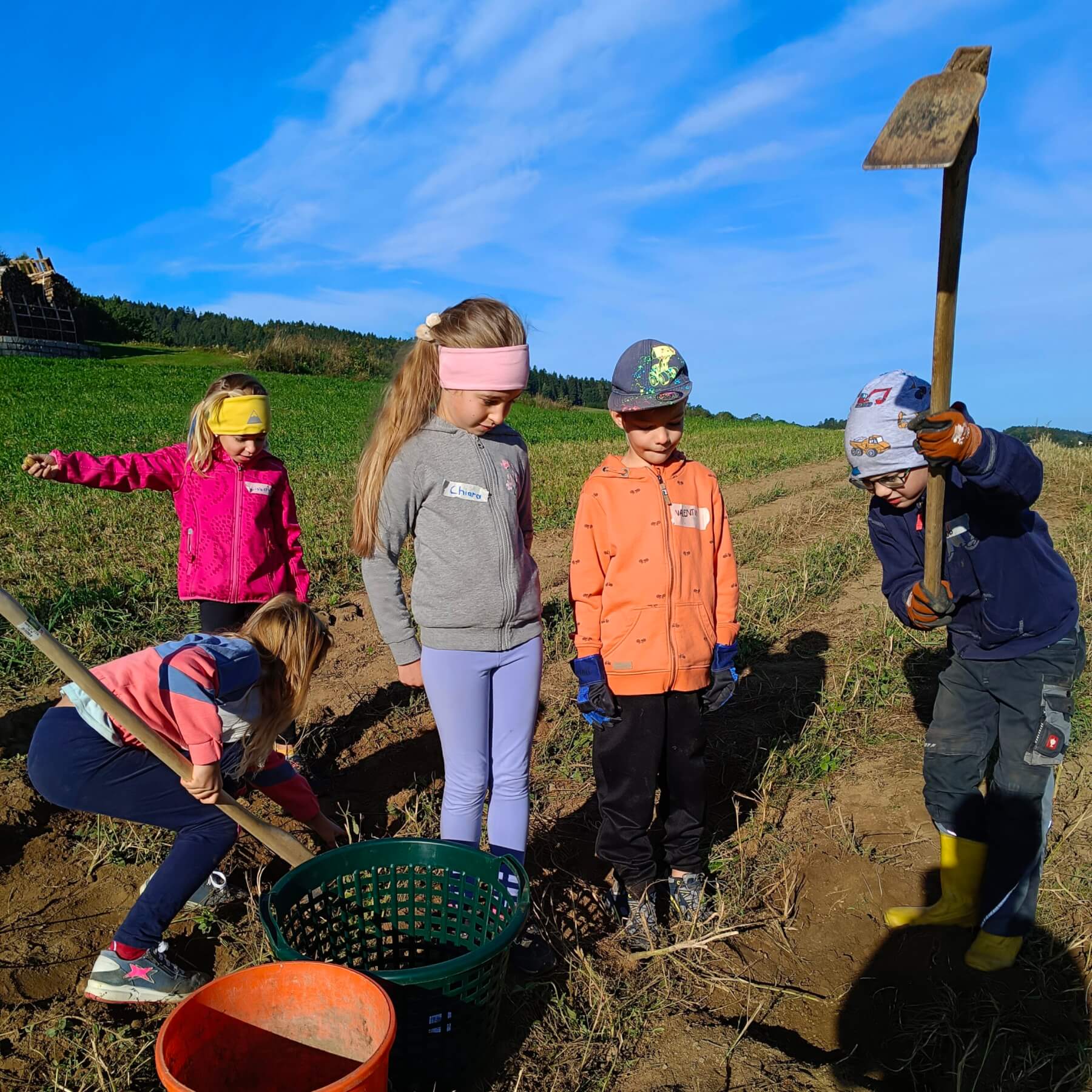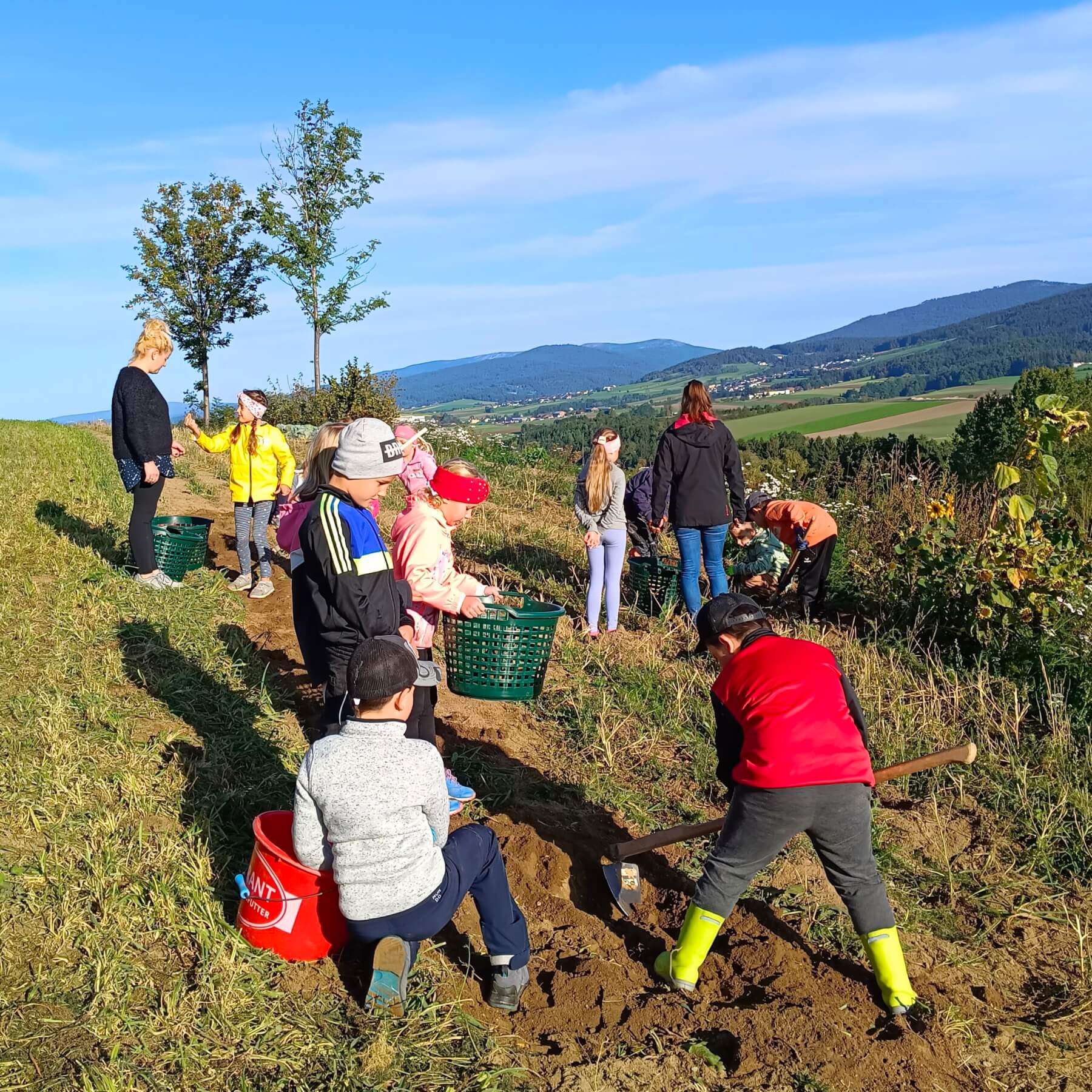 Die Kinder dürfen tatkräftig miterleben, wie sich der Erdapfel am Kartoffelacker entwickelt. Mit allen Sinnen lernen wir die Kartoffel, vom Saatgut bis zur Lagerung, kennen und legen am Acker selbst Hand an. Die gemeinsame Zubereitung einer kleinen Jause bringt die Kinder auf den Geschmack des Erdapfels.