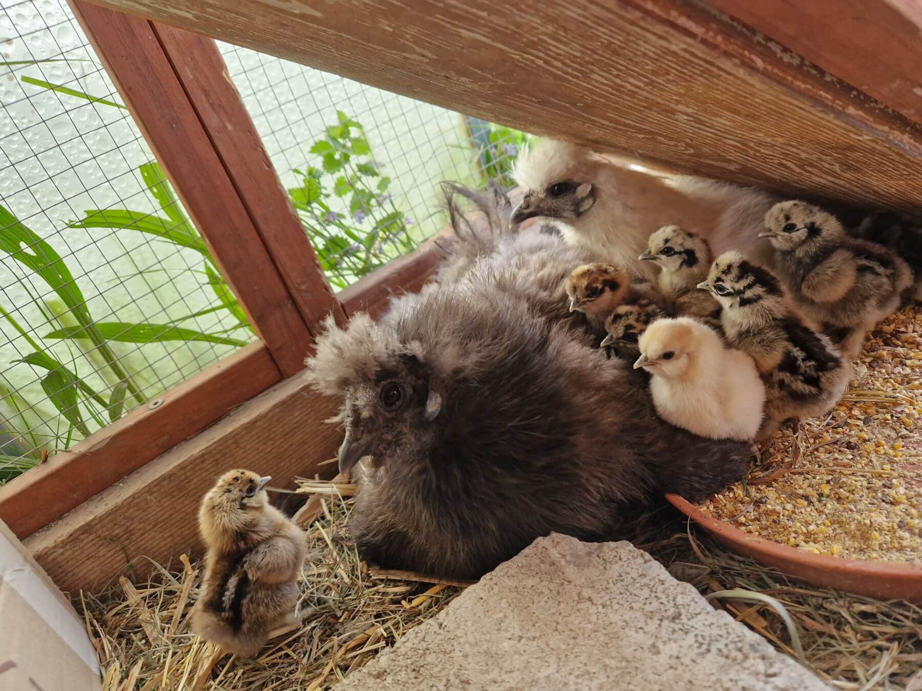 17 Kühe, Kälber, Hühner, Wachteln, Puten, Seidenhühner, Zwergziegen, Katzen, Hasen und 1 Hund