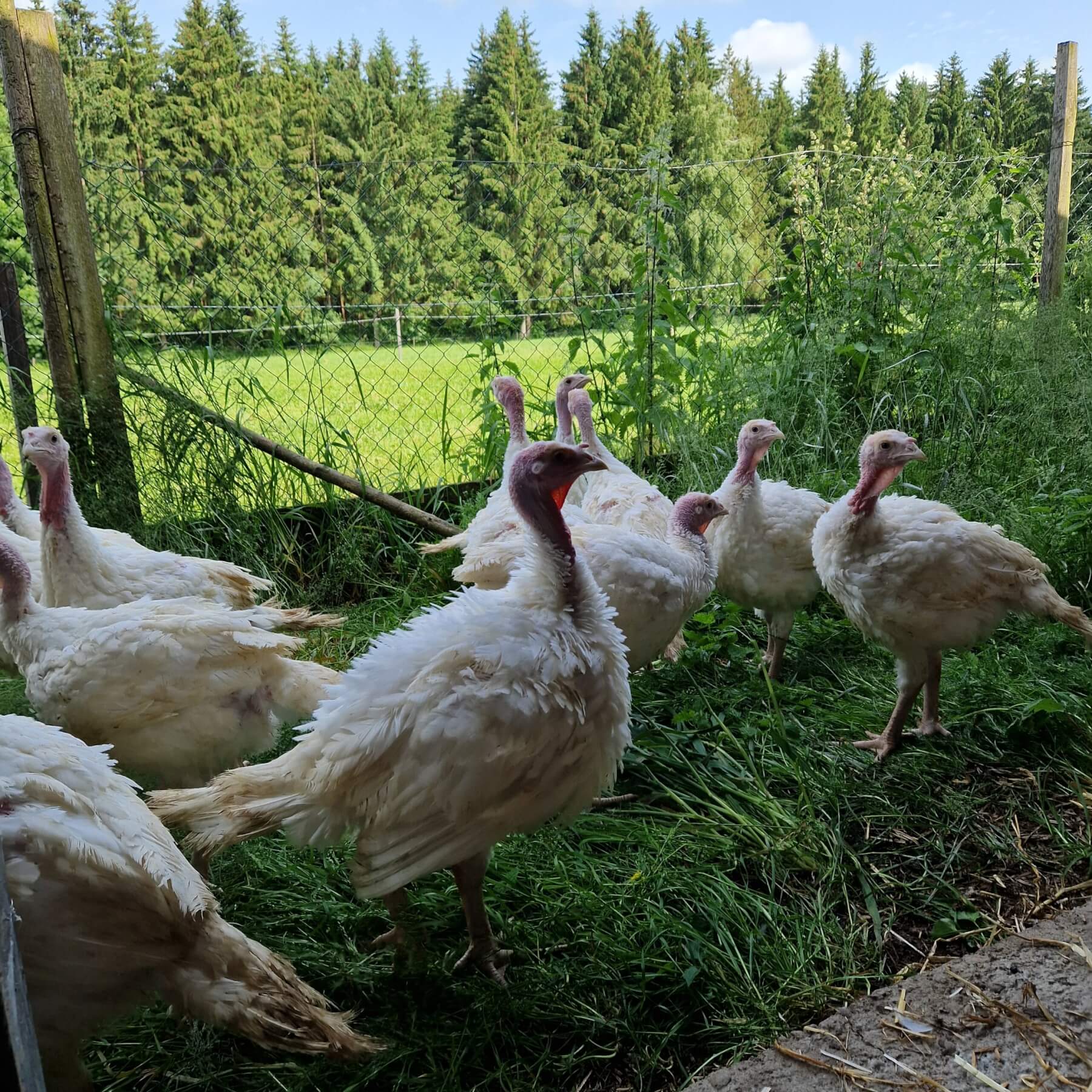 Bei uns lebt nicht nur eine kunterbunte Milchviehherde auf den Feldern – auch Hühner, Wachteln, Puten, Seidenhühner, Zwergziegen, Katzen, Hasen und unsere treue Hofhündin Amy gehören zur großen Hofgemeinschaft.