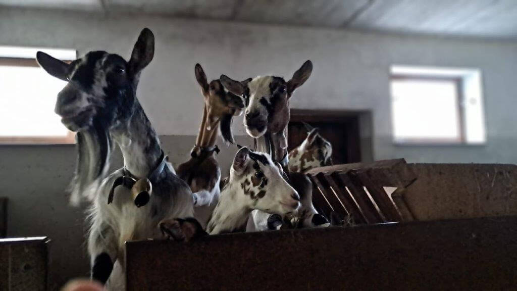 20 Milchkühe, 1 Zuchtstier, 35 Mutterschafe und Nachzucht, Ziegen, Hühner und Hasen