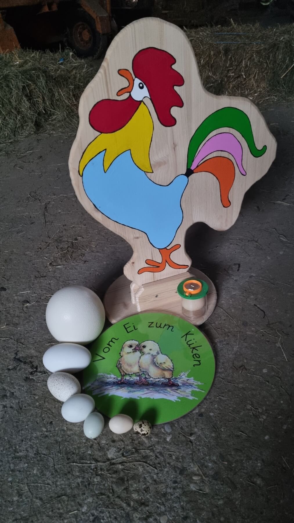 Gemeinsam erkunden wir die "Hühnerwelt". Die Kinder dürfen beim Ausmisten, Einstreuen, Eieraufheben, ... helfen.
