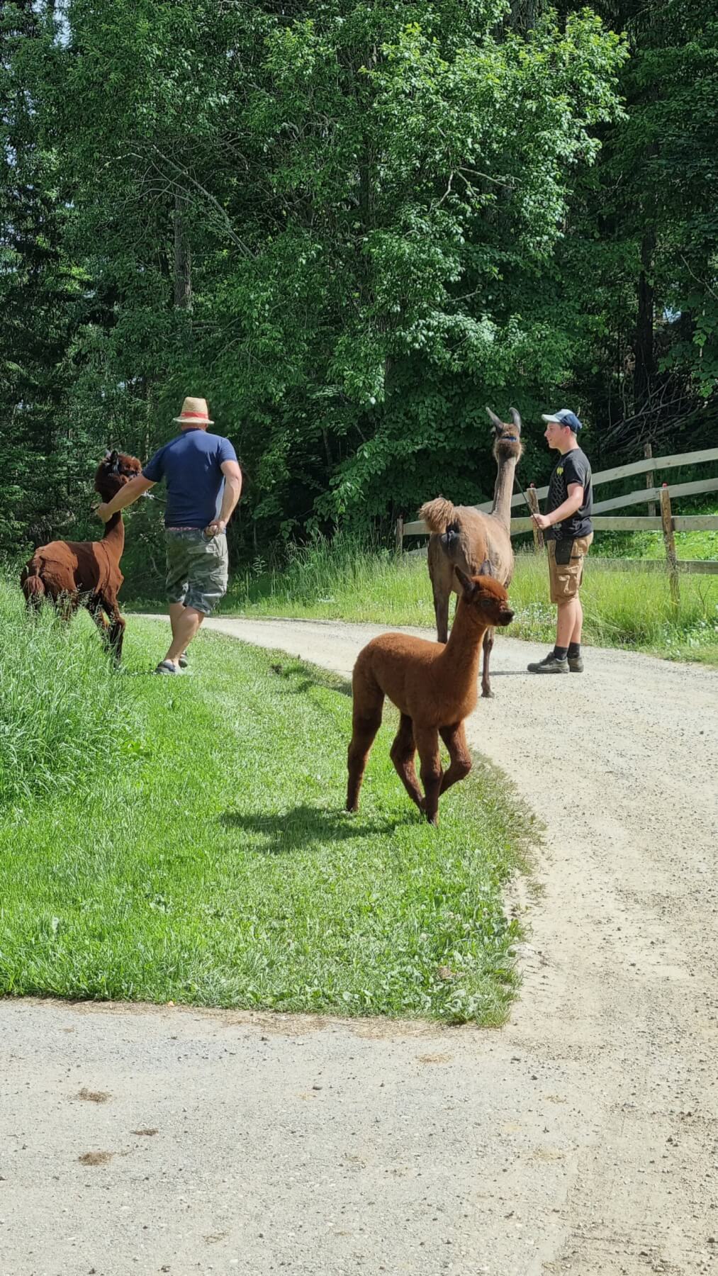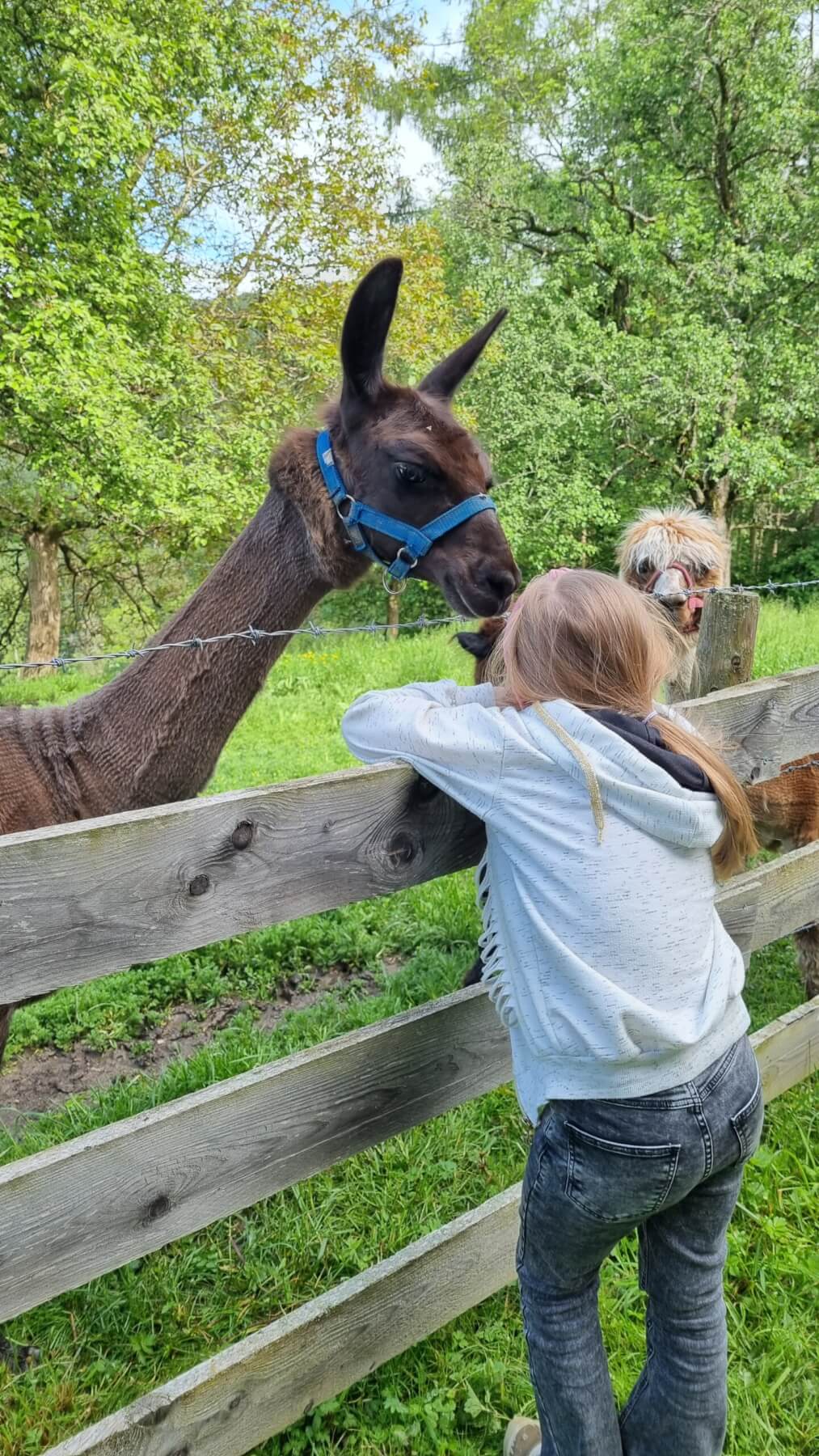 Wir erkunden, was unsere Kühe gerne fressen und füttern sie mit frisch gemähtem Gras, warum unsere Hühner den ganzen Tag rumgackern und beobachten unsere neugierigen wolligen Mitbewohner – unsere Lamas und Alpakas.