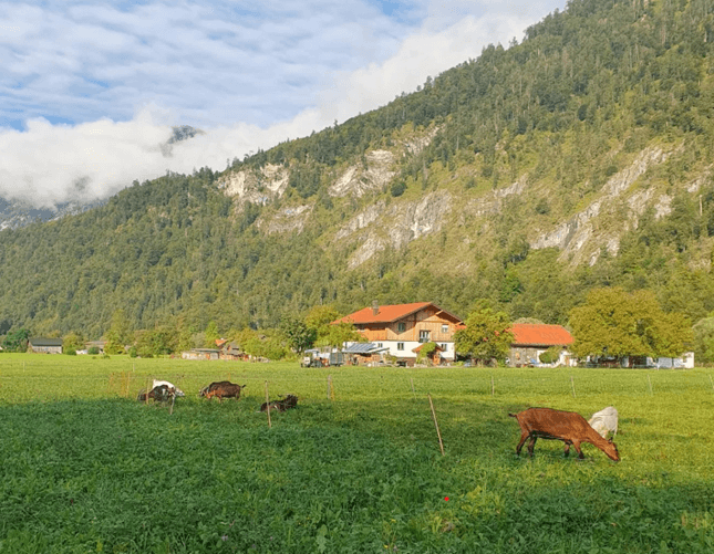 Wir sind ein biologisch bewirtschafteter, kleinstrukturierter Grünlandbetrieb im Nebenerwerb geführt, mit wunderschöner arrondierter Lage in Ebensee. Bei uns führt keine öffentliche Straße vorbei, wir sind durch unsere eigene Hofzufahrt oder über einen Spazierweg erreichbar. Auf unserem Betrieb leben eine Vielzahl an Tieren, eine Mutterkuhherde inkl. Nachzucht, eine Milchziegenherde, mit Jungziegen und 2 Böcken. Einige freilaufende Hühner, Hasen, Kater Willi und unsere Hündin Roxy runden unsere Vielfalt ab.