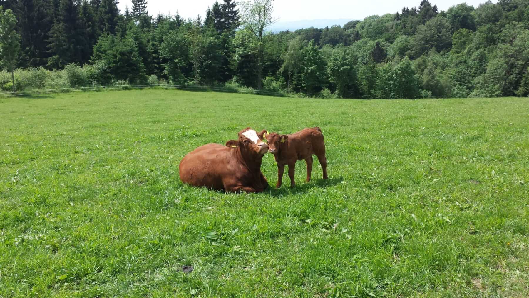 • Mutterkuhhaltung: Naturnahe Aufzucht von Kälbern direkt bei den Mutterkühen.