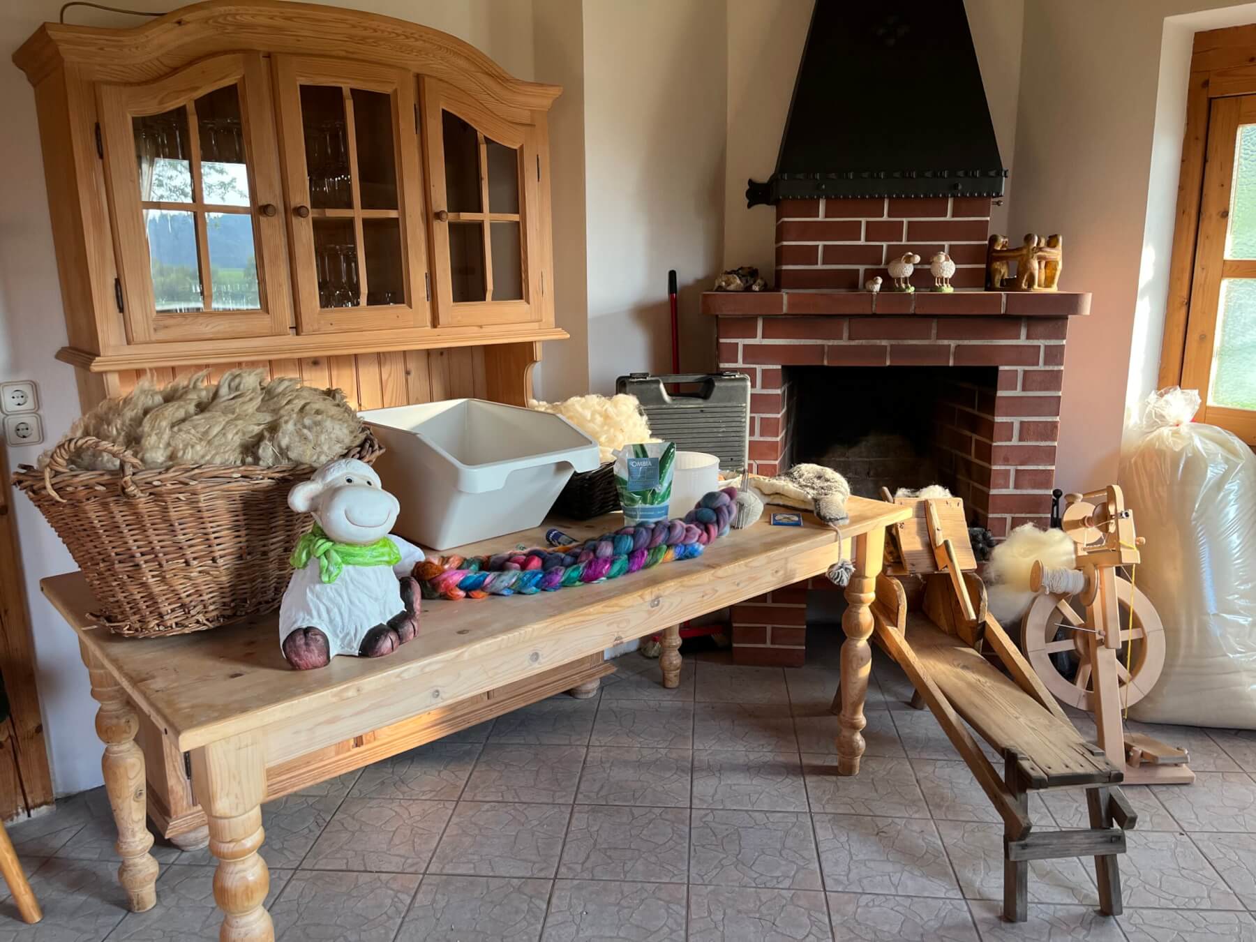 Unsere Schafe schenken uns zahlreiche Gaben: Milch, Fleisch, Wolle und noch mehr dürfen wir von den Schafen nützen. Aktiv und spielerisch erfahren wir was es rund um das Jahr für die Pflege und Betreuung dieser wolligen Vierbeiner braucht und tauchen so in den Arbeitsalltag einer Landwirtschaft ein. Gemeinsam gehen wir der Wunderfaser Wolle nach und erkunden die Arbeitsschritte von der Schur bis zum fertigen Kleidungsstück. Abschließend filzen wir ein kleines Werkstück, das die Kinder mit nach Hause nehmen dürfen. So tauchen wir in ein sinnliches Erlebnis ein – spüren, fühlen, riechen die Wolle und kommen ins handwerkliche Tun & Gestalten.