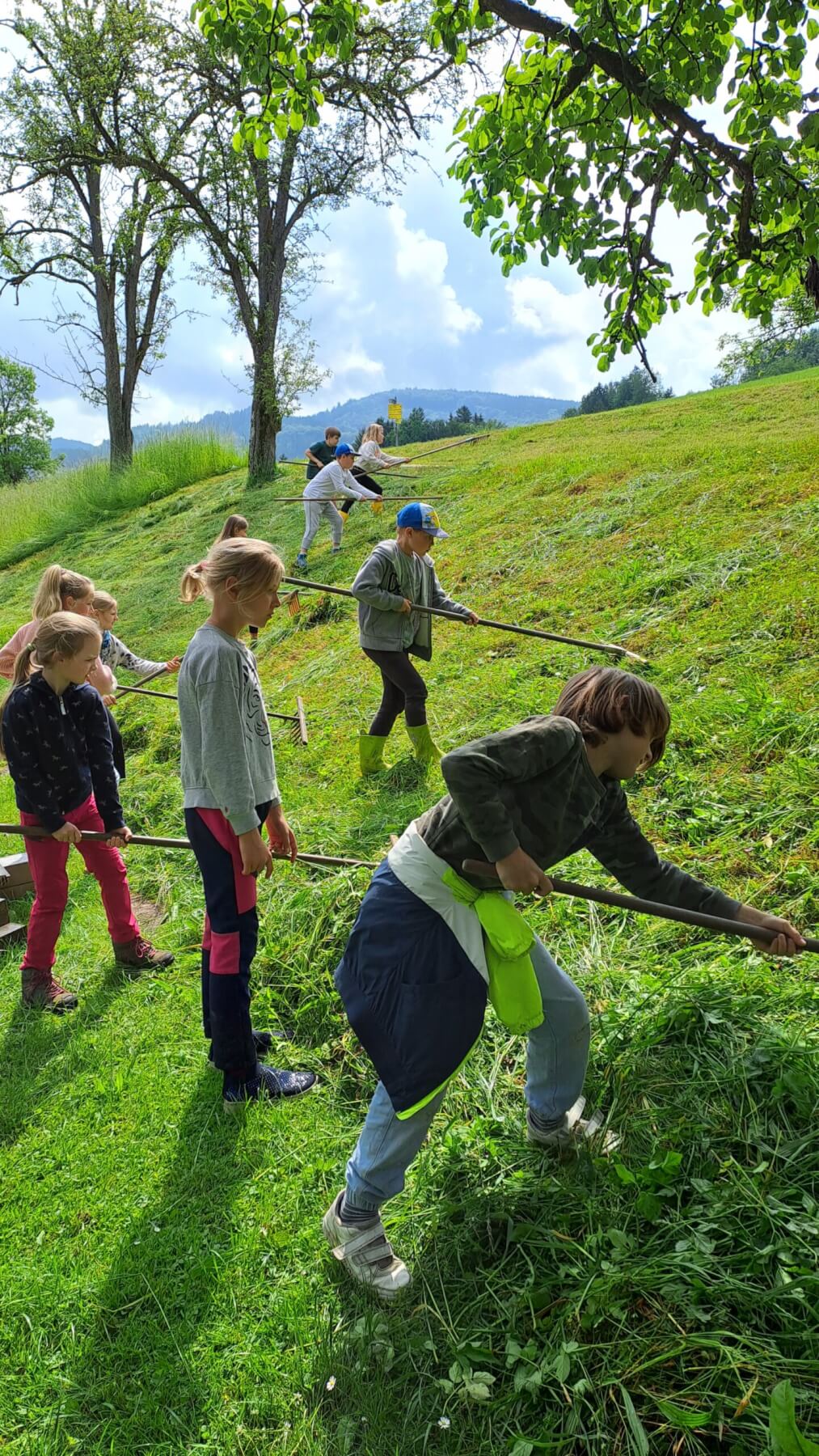 An diesem Halbtag können unsere Gäste spielerisch die Tätigkeiten am und rund um den Bio-Hof kennen lernen und somit jene Fähigkeiten und FERTIGKEITEN, die eine BÄURIN/ein BAUER braucht, erwerben: Futtergras heigen, Wettmelken, Gummistiefelzielwurf, Nageln, Heuhütterl auflegen, Palatschinken schupfen, uvm. Zur Heumähzeit geht’s heiß her, drum brauchen Bäurinnen und Bauern auch manchmal Abkühlung: eine Wasser-Rutsche! Zum Schluss wartet eine feine Bauernhof-Jause, ein Abschlussfoto und eine Urkunde auf die Neo-Bäurinnen und Neo-Bauern!