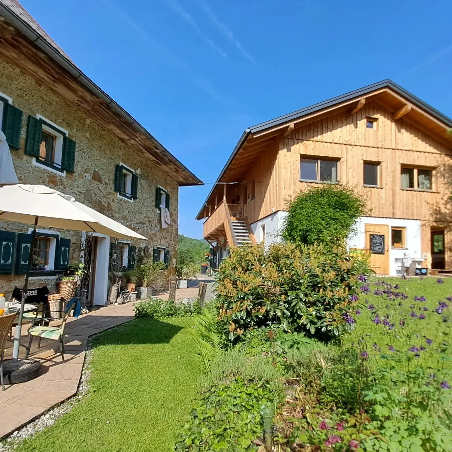 Einzellage mit Wald und Wiesen, die zum Betrieb gehören; Bauernhaus mit alter Steinfassade; Indianertipi, Lagerfeuerstelle, Spielplatz, Schaukel, Streicheltiere; Aufenthaltsraum mit Küche und Brotbackofen, Wald, Bach und Wiese (für Spiele, zum Klettern, Toben, Wassererkundung) - ideal für Schulklassen und KinderWeitere Infos