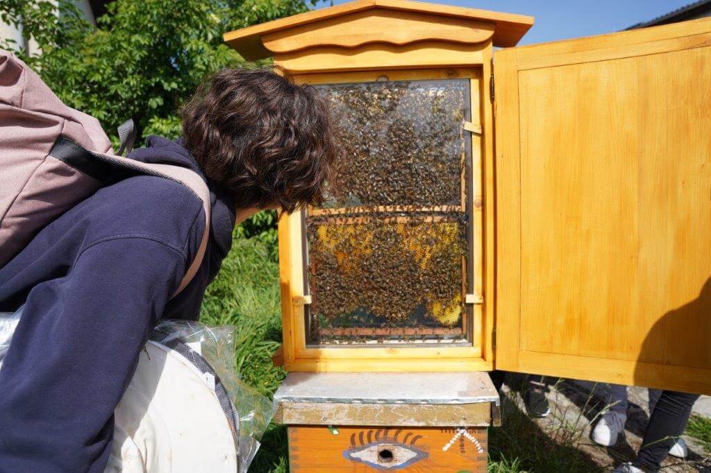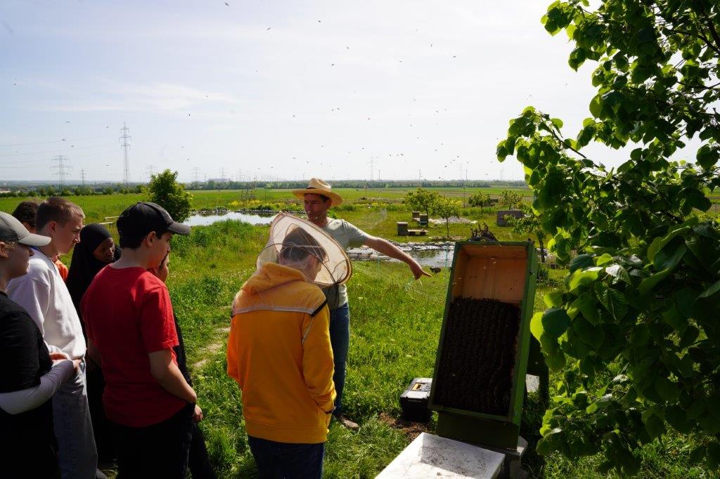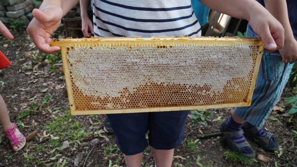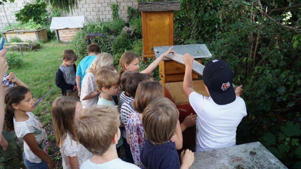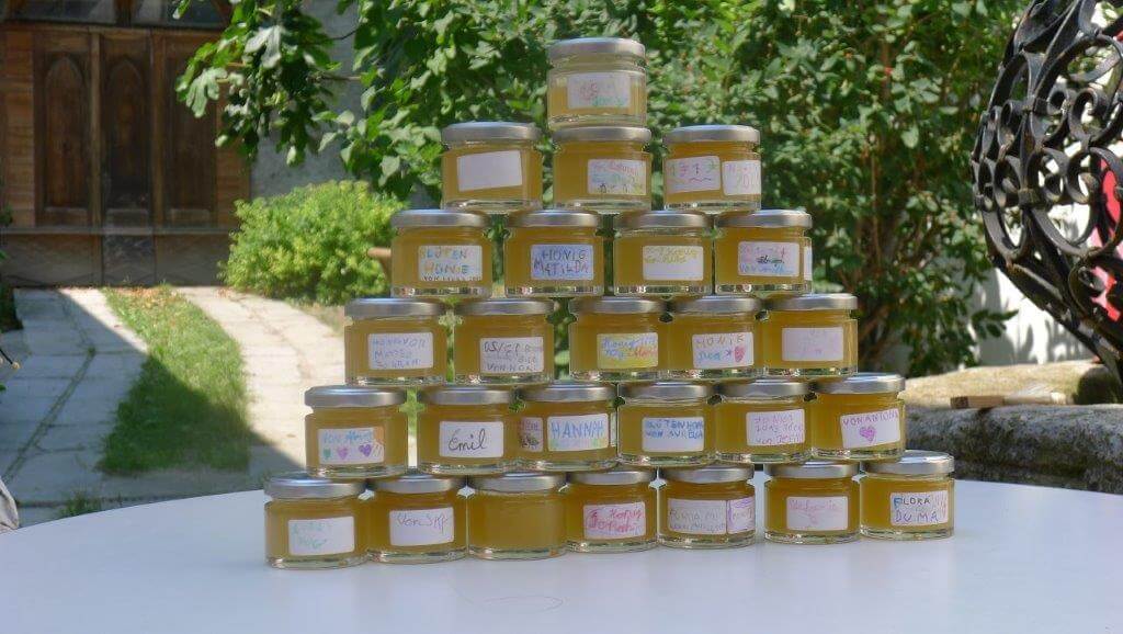 Wir erkunden den Weg des Honigs von der Blüte bis ins Glas, schauen den Bienen aus der Nähe bei der Arbeit zu und helfen aktiv dem Imker bei der Ernte, dem Schleudern und Abfüllen des Honigs. Als Lohn der Arbeit nimmt jedes Kind sein Glas selbst geernteten Honigs mit nach Hause.